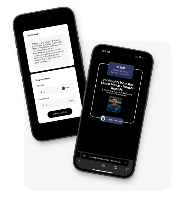 Install your the WordPress plugin, and you can immediately start charging any click-fee to watch/listen to any content on you website. Reduce your dependence on memberships/subscriptions and ads.